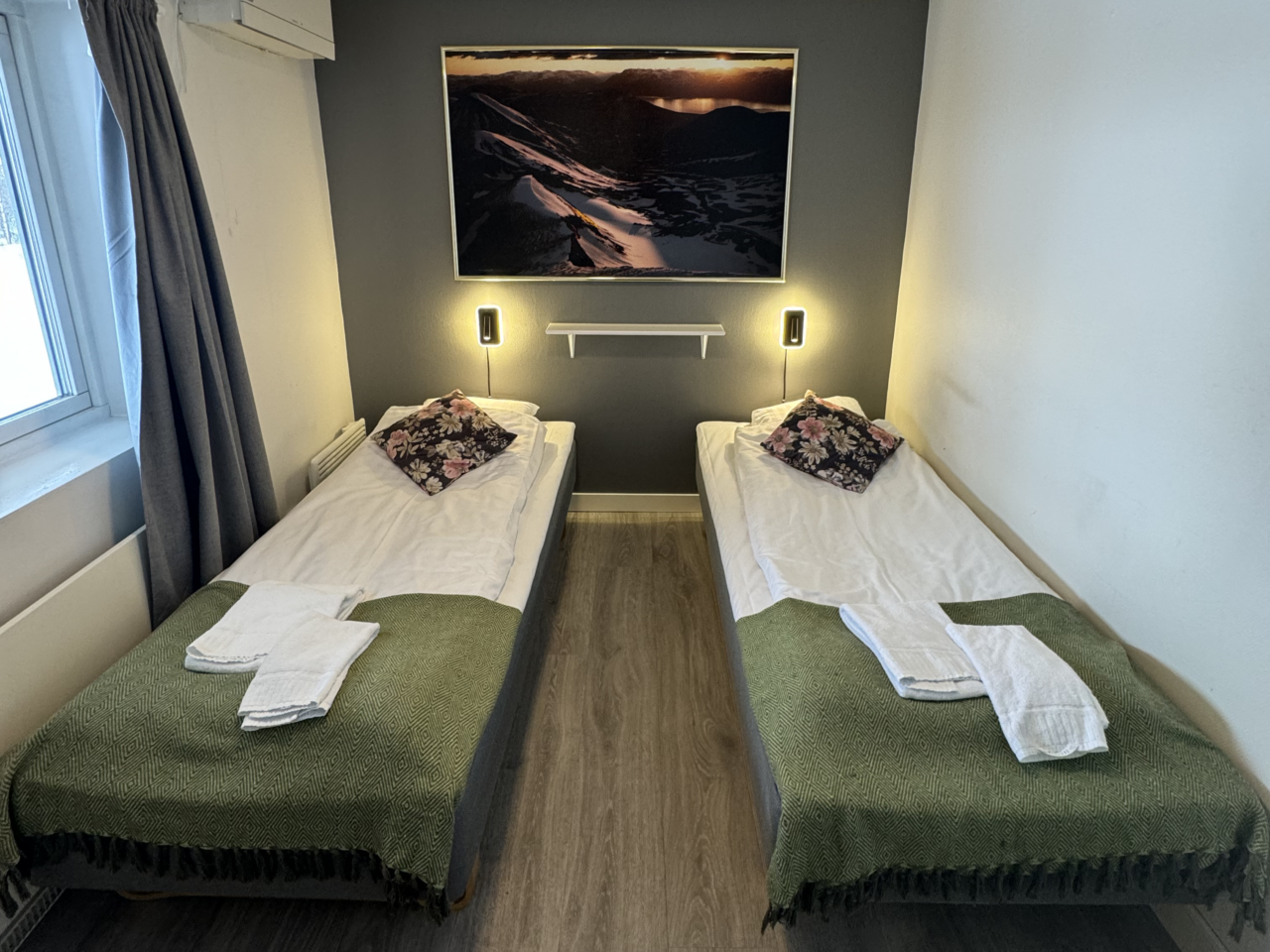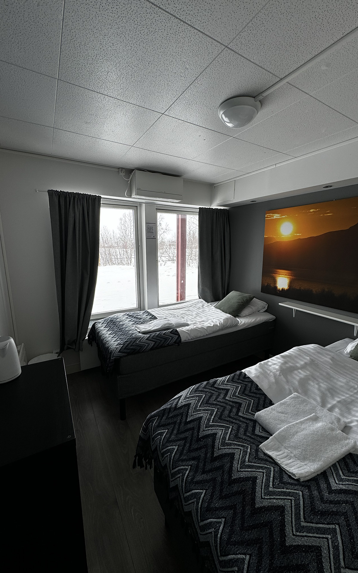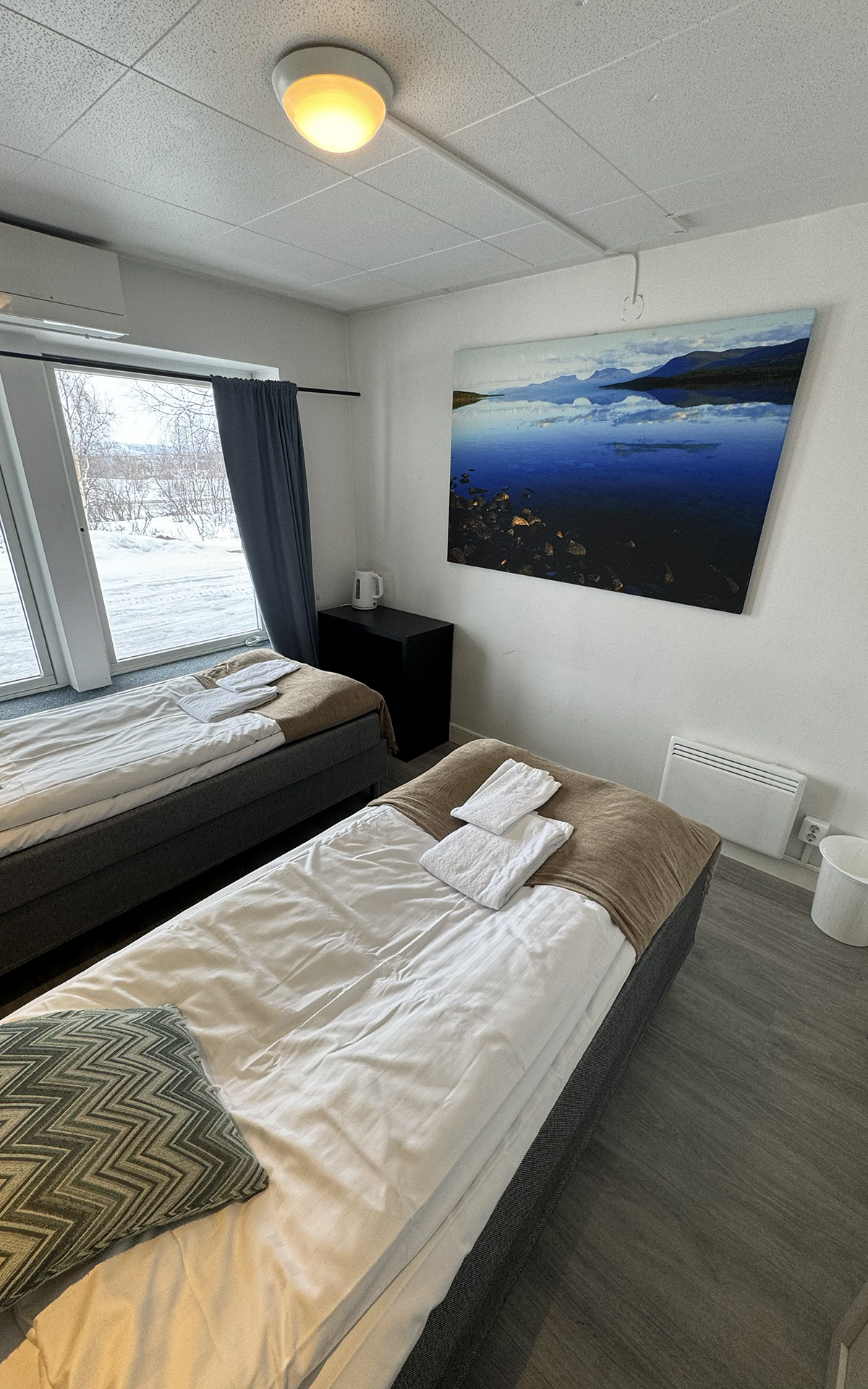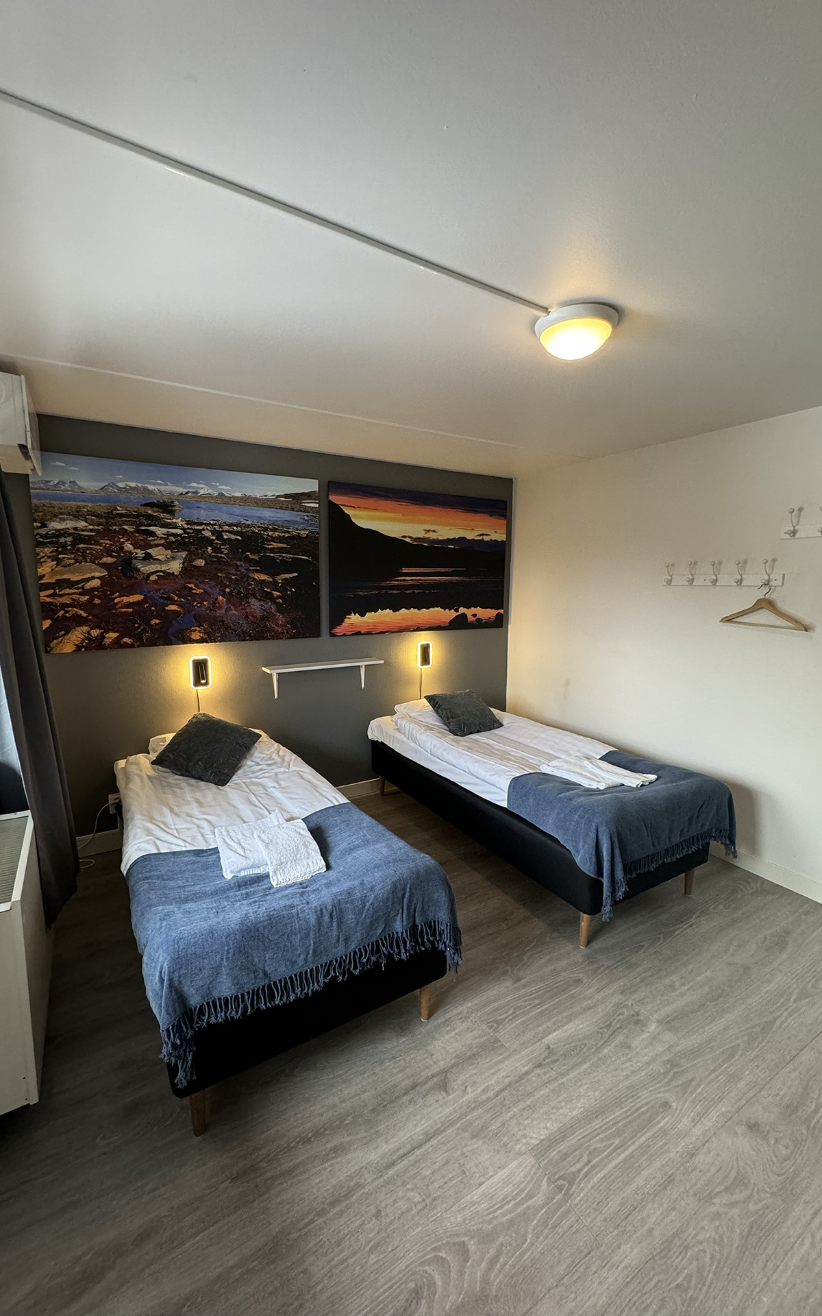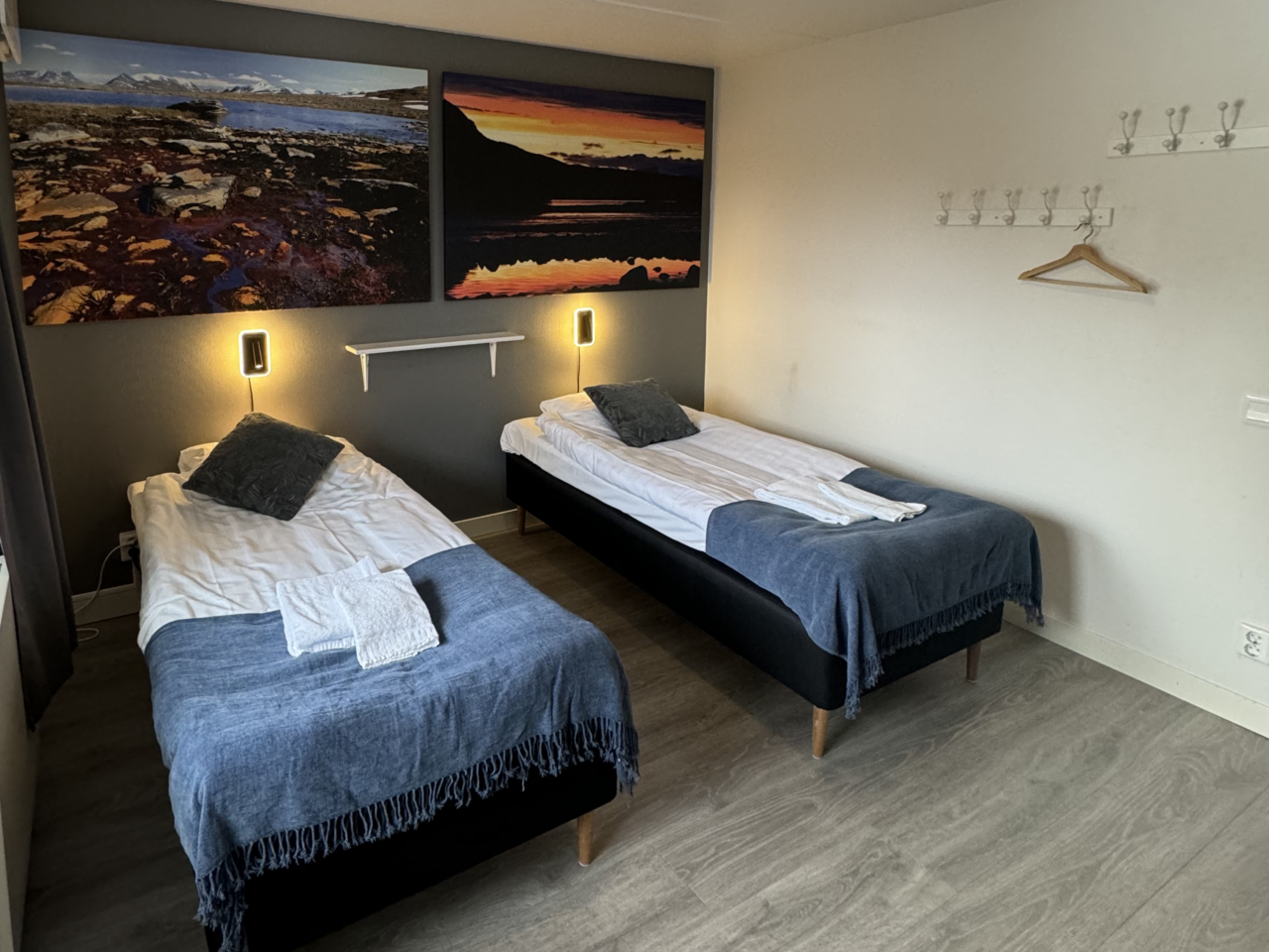 The hostel offers four private twin rooms, with access to a communal kitchen, bathrooms, and a small lounge space. Open from April to October, the hostel is a great place to meet fellow travelers, swap stories, and plan adventures in the Abisko wilderness. Our hostel occupies the lower level of the property, with its own dedicated entrance. This setup makes it simple for guests to come and go as they please, while keeping the hostel a cozy and self-contained space.