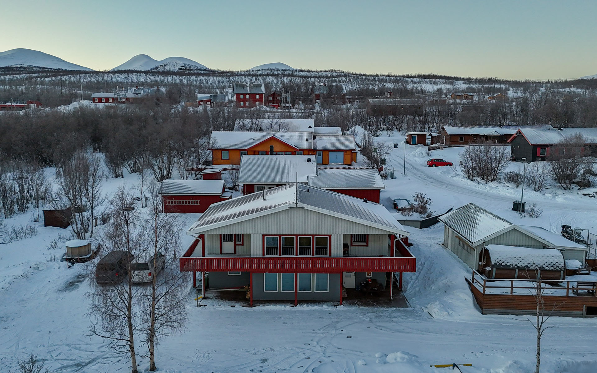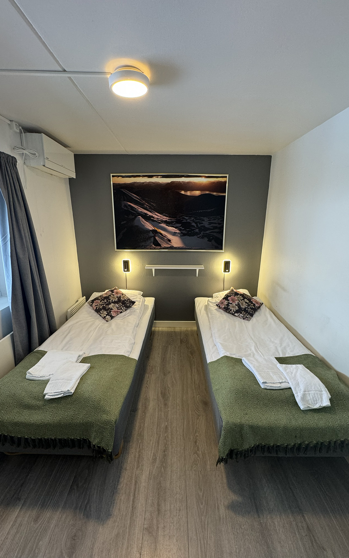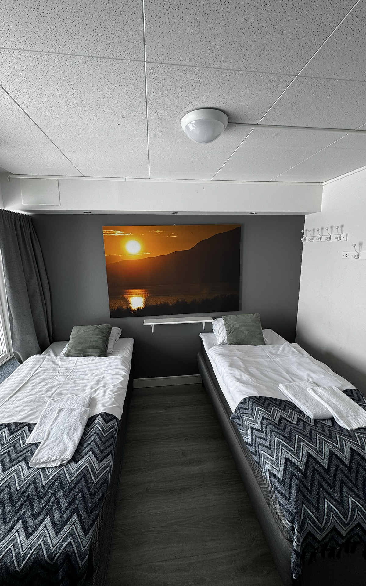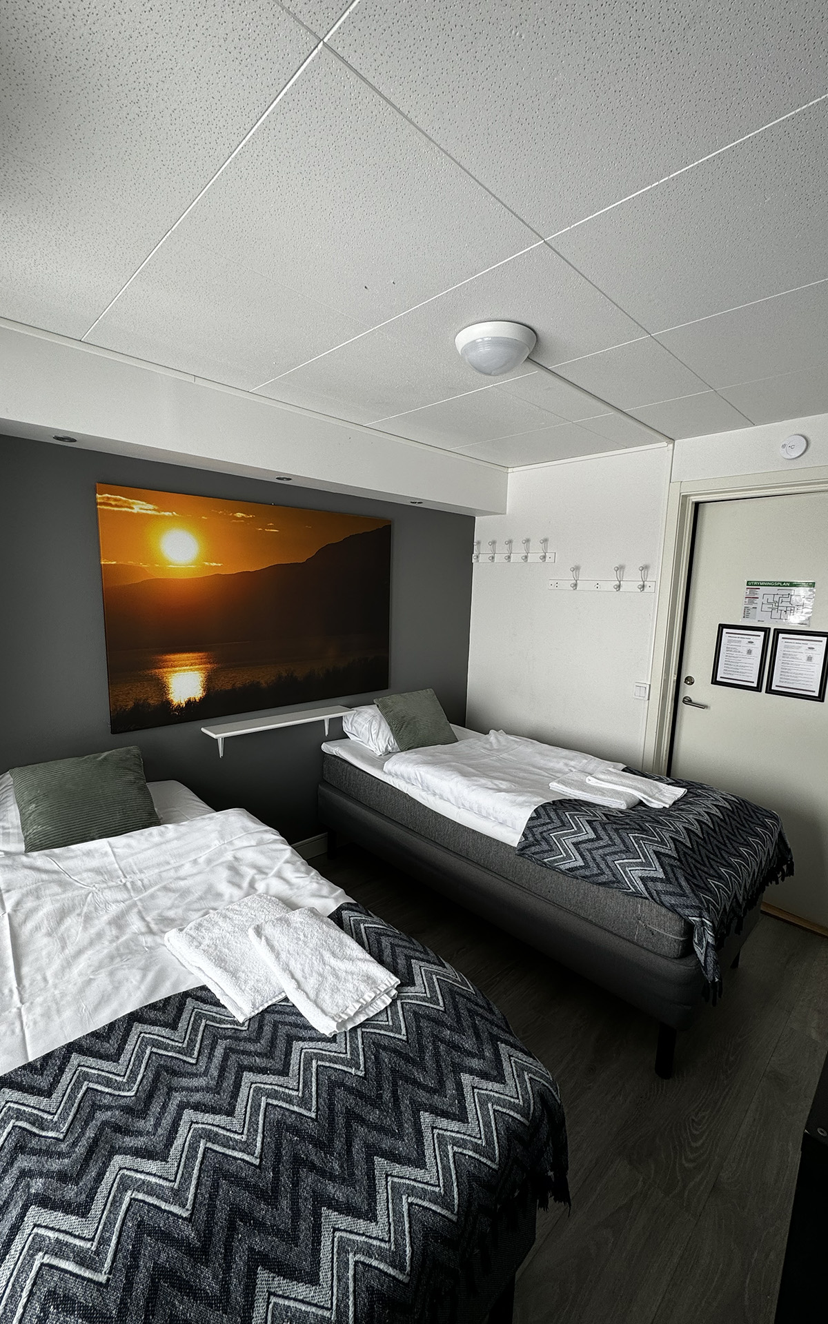 The hostel offers four private twin rooms, with access to a communal kitchen, bathrooms, and a small lounge space. Open from April to October, the hostel is a great place to meet fellow travelers, swap stories, and plan adventures in the Abisko wilderness. Our hostel occupies the lower level of the property, with its own dedicated entrance. This setup makes it simple for guests to come and go as they please, while keeping the hostel a cozy and self-contained space.