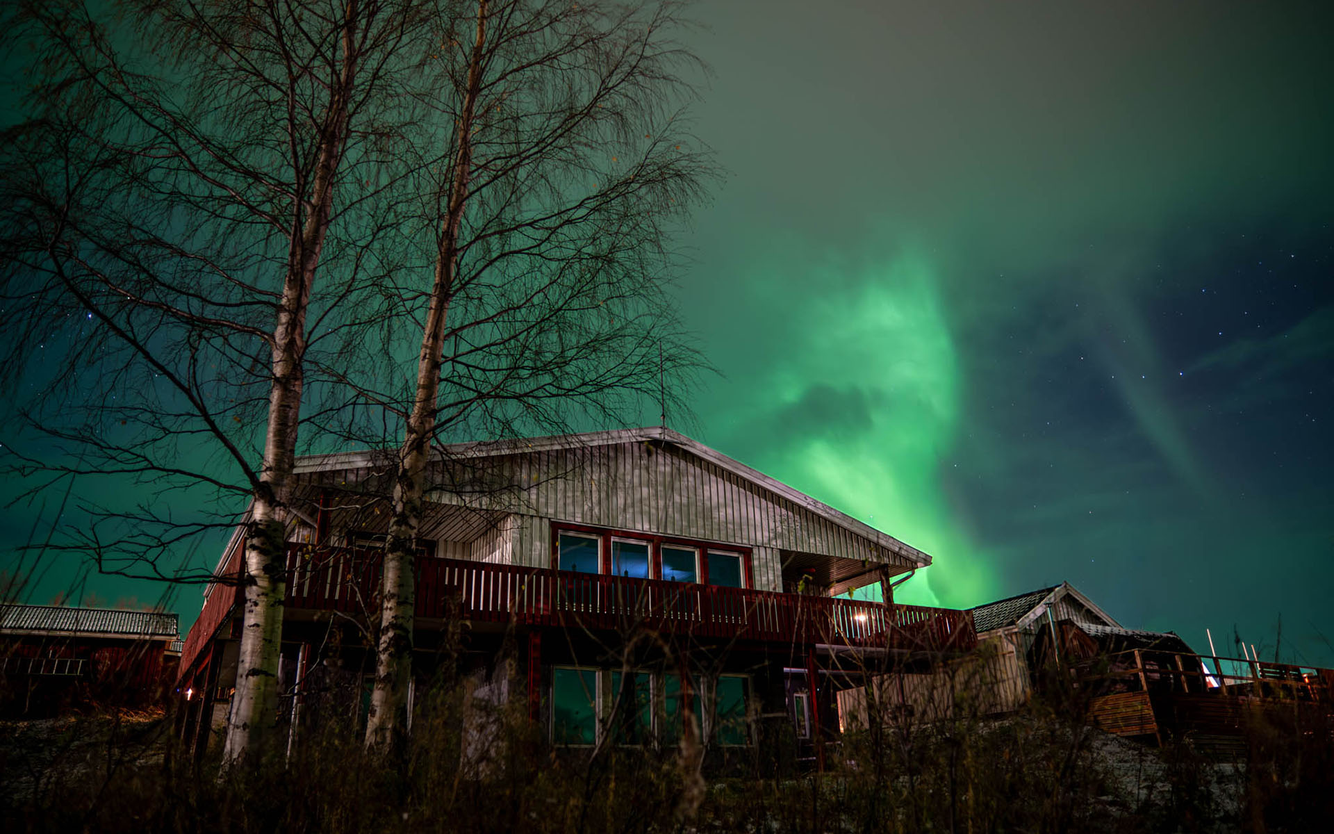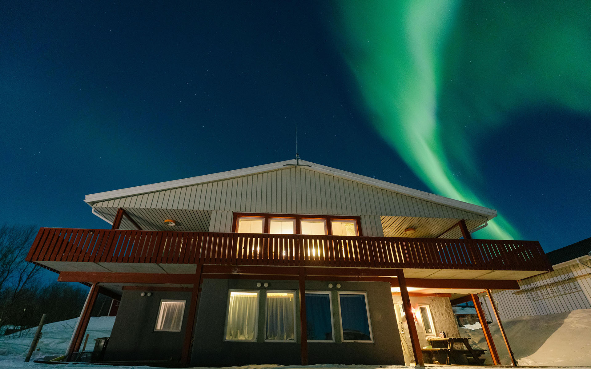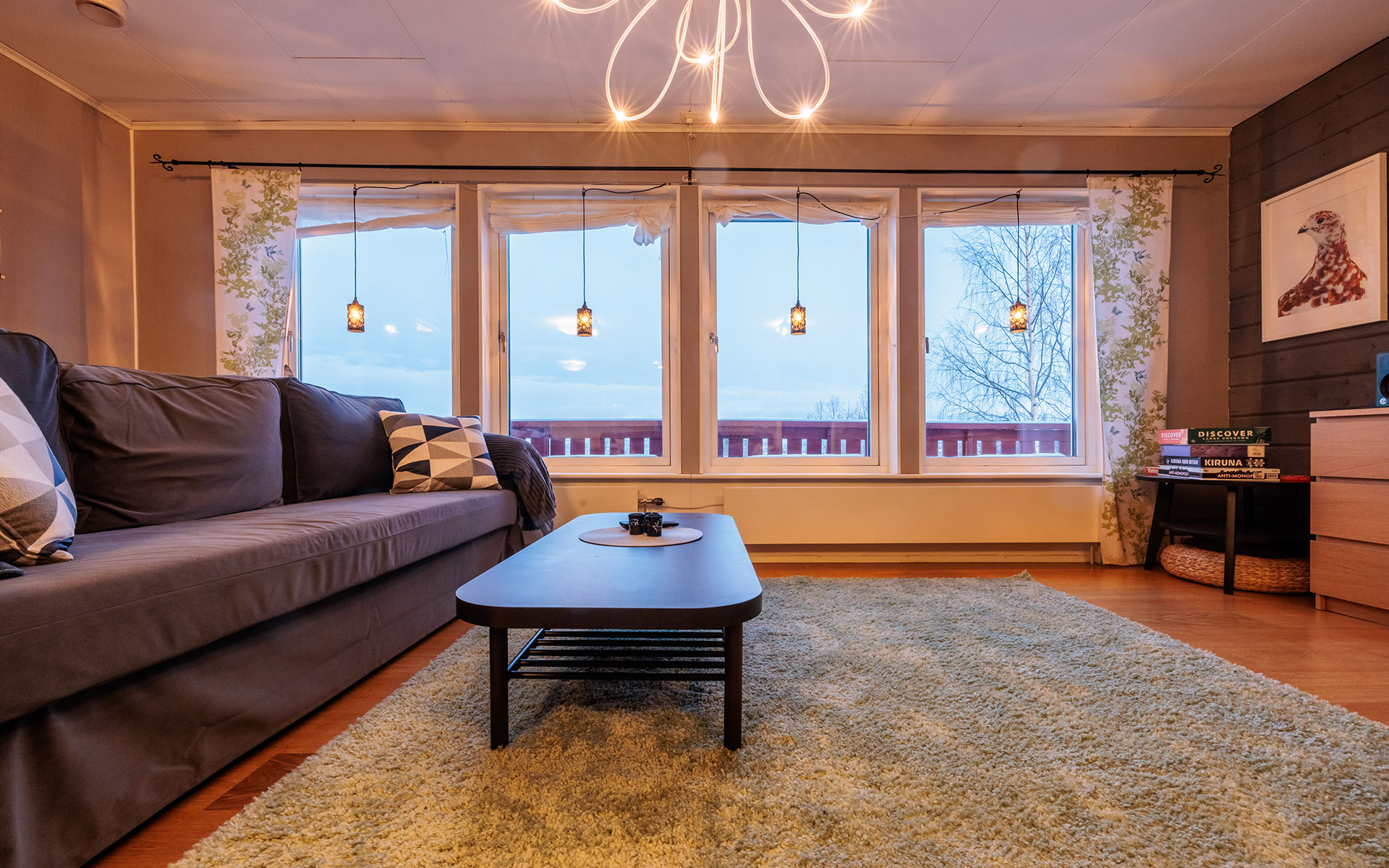 The Abisko Panorama House lives up to its name. With sweeping views of the surrounding mountains and Lake Torneträsk, it’s a home designed for those who want to wake up surrounded by Arctic beauty. The wrap-around deck offers spectacular 180 degree views, making it a favorite spot for guests who want to watch the northern lights dance across the sky or enjoy the midnight sun in comfort.