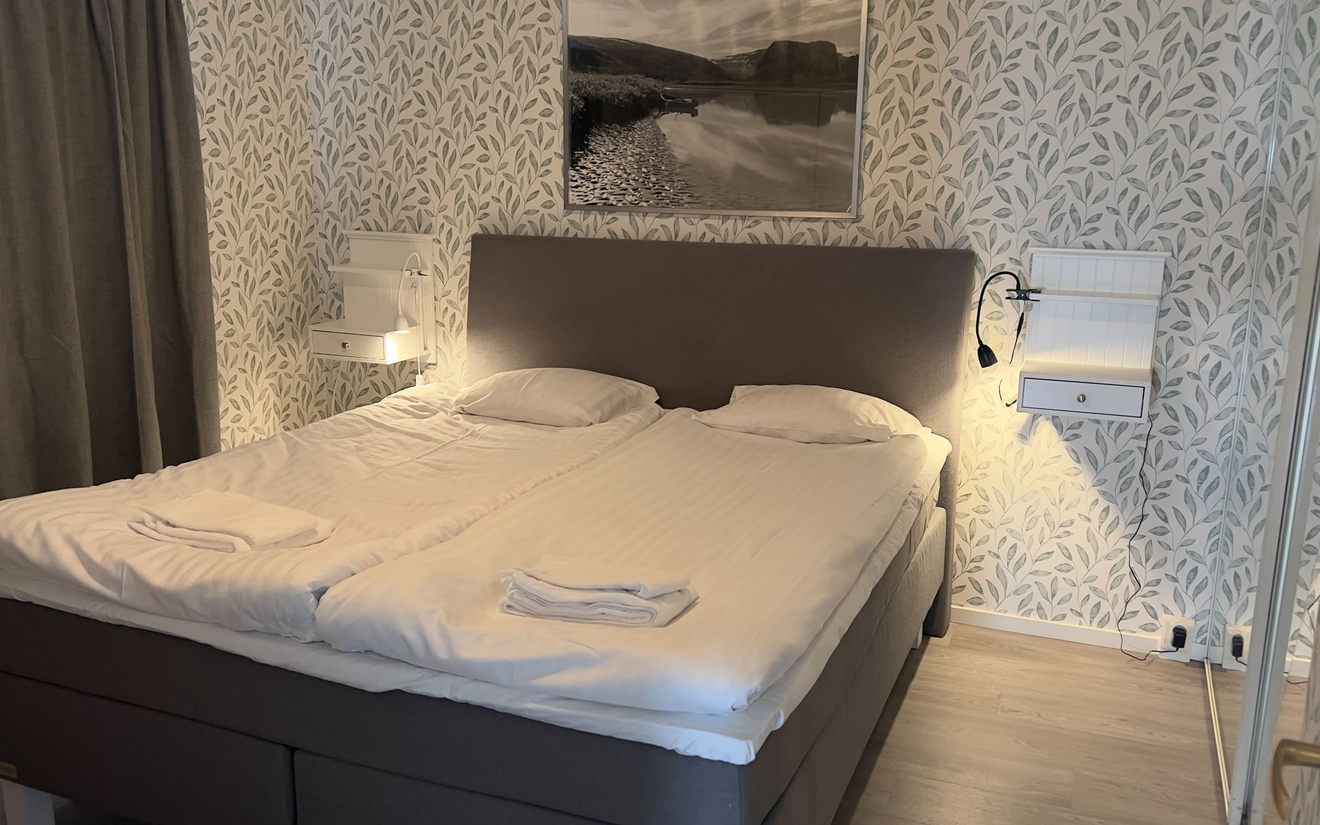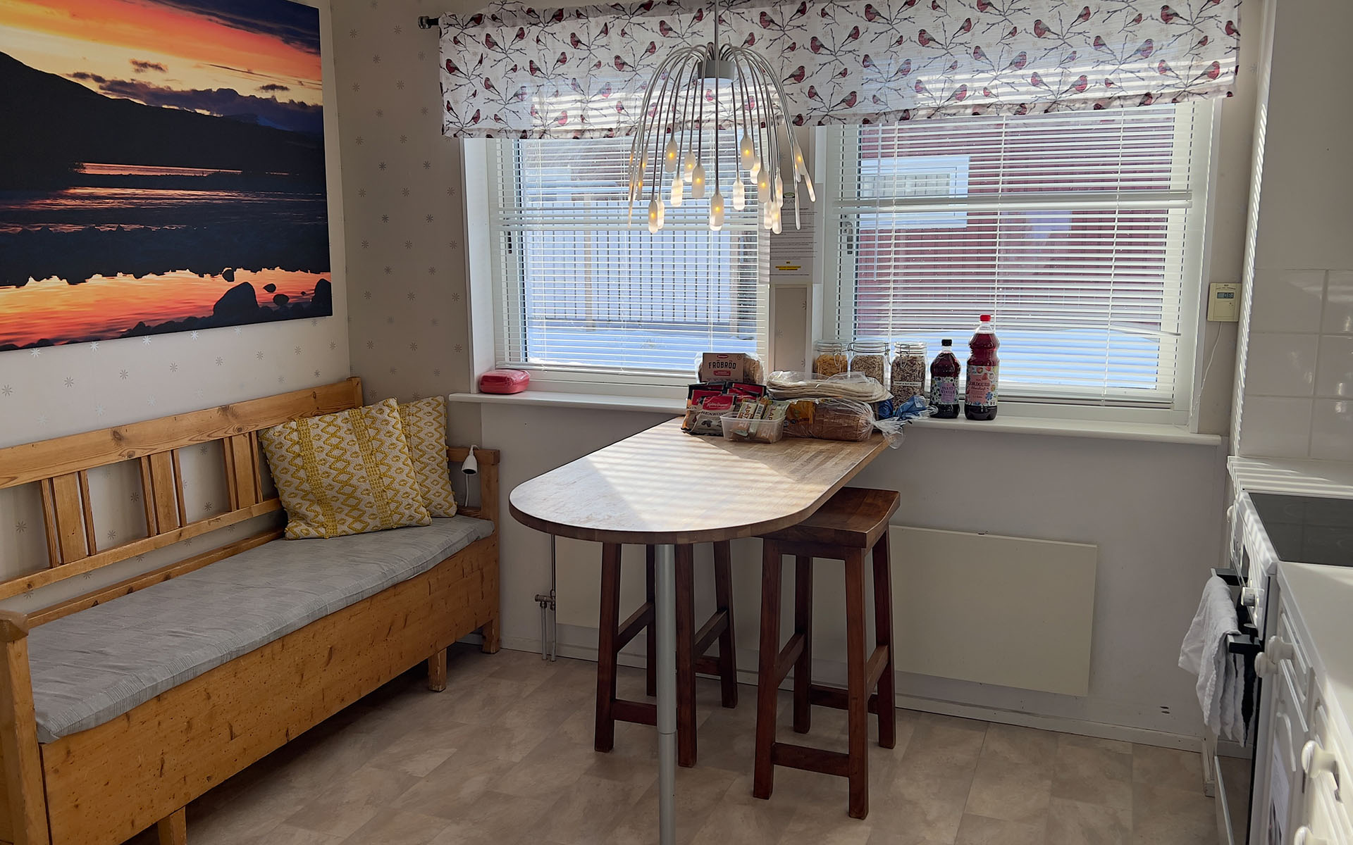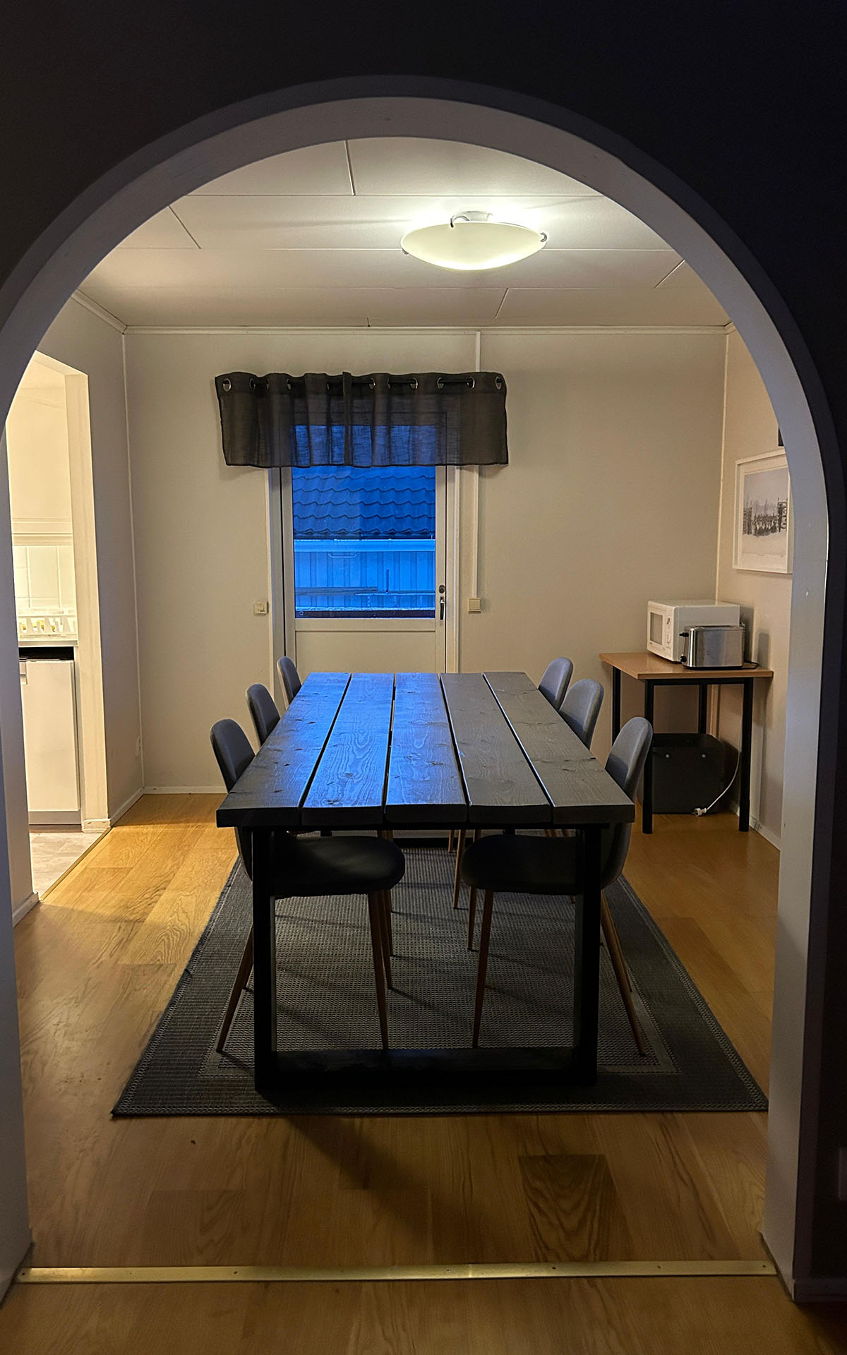 The Abisko Panorama House lives up to its name. With sweeping views of the surrounding mountains and Lake Torneträsk, it’s a home designed for those who want to wake up surrounded by Arctic beauty. The wrap-around deck offers spectacular 180 degree views, making it a favorite spot for guests who want to watch the northern lights dance across the sky or enjoy the midnight sun in comfort.